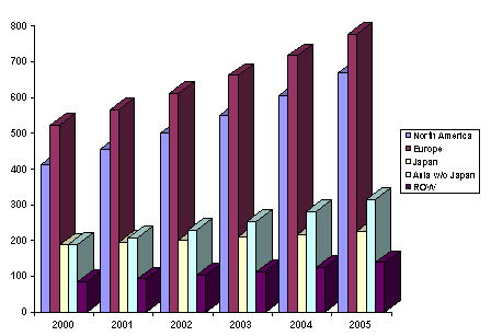 Japan, Asia without Japan, and Rest of World. They are structured as follows: