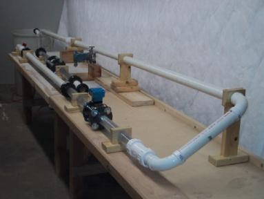 After master meter calibration with a straight walled pipe in the test section, primary elements will be mounted for test. A Rosemount 3095 pressure transmitter will receive and interpret the pressure differentials created by the primary elements in the flow.